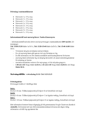 Provning I Matematikkurser Provning I Matematikkurser Matematik 1a 100 Poang Matematik 1b Studocu